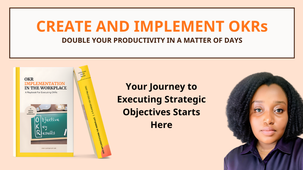 Transform your organization with OKR Implementation in the Workplace: A Playbook for Executing OKRs by Awura Abena Amponsah. This step-by-step guide is designed to help leaders and teams at all levels adopt and execute Objectives and Key Results (OKRs), the goal-setting framework that has propelled the world's most successful companies to staggering heights of efficiency and achievement.